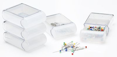 Schaffen Sie Ordnung in Ihrer Nähstube! Mit unseren handlichen Aufbewahrungsboxen aus Kunststoff sind die wichtigsten Nähutensilien, wie zum Beispiel Steck- und Sicherheitsnadeln, Nähnadeln, Knöpfe, Perlen, Nieten uvm. schnell und übersichtlich verstaut. Die Boxen lassen sich zudem leicht aufeinanderstapeln und benötigen weder im Nähkorb noch auf dem Schreibtisch zu viel Platz – die idealen Aufbewahrungsboxen für all Ihre Kleinigkeiten!
