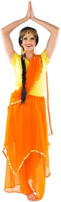 Gewürze in satten Farben und Stoffe mit goldenen Verzierungen – das ist die schillernde Welt Indiens. Im indischen Sari Kostüm erleben Sie traditionelle Klänge und Gerüche aus dem fernen Indien auf der nächsten Faschingsparty. Schlüpfen Sie mit dem buttinette Bollywood Kostüm in einen der grossartigen Bollywood Filme und werden Sie zum Blickfang auf der nächsten Karnevalsparty. Mit dem buttinette Sari Kostüm sind Sie anders wie das Traditionsgewand auch im Nu angezogen. Einfach in den Figur umschmeichelnden Rock schlüpfen und den angenähten Sari über die Schulter legen. Jetzt nur noch ein Bindi, den indischen roten Punkt, in die Mitte der Stirn, zwischen die Augenbrauen gemalt – und fertig ist ein märchenhafter Auftritt im Bollywood Kostüm.
