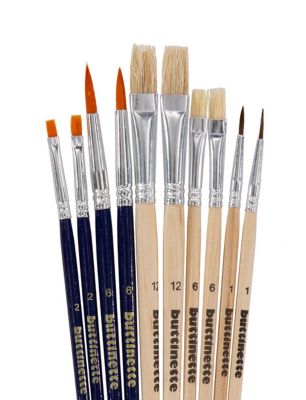 buttinette Hobbypinsel-Set, für sämtliche Maltechniken geeignet. 4 Borstenpinsel in den Grössen 6 und 12, 4 Rundhaarpinsel in den Grössen 1 und 6, 2 Flachpinsel in der Grösse 2, Länge: 16,5–19 cm, Inhalt: 10 Pinsel.