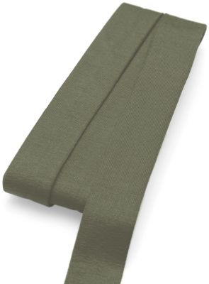 buttinette Jersey-Einfassband, Farbe: khaki, Breite 2 cm, von 4 cm auf 2 cm vorgefalzt, Länge: 3 m. Material: 94% Viskose, 6% Elasthan.