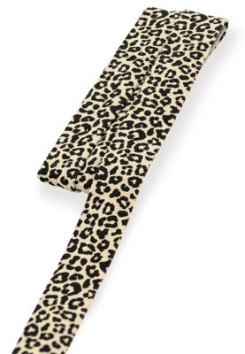 buttinette Jersey-Einfassband "Leo", Farbe: beige/schwarz, Breite: 2 cm, von 4 cm auf 2 cm vorgefalzt, Länge: 3 m. Material: 94 % Viskose, 6 % Elasthan.