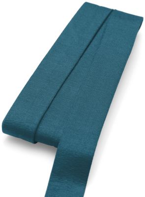 buttinette Jersey-Einfassband, Farbe: petrolblau, Breite: 2 cm, von 4 cm auf 2 cm vorgefalzt, Länge: 3 m. Material: 94% Viskose, 6% Elasthan.