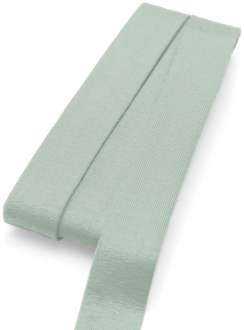 buttinette Jersey-Einfassband, Farbe: salbei, Breite 2 cm, von 4 cm auf 2 cm vorgefalzt, Länge: 3 m. Material 94 % Viskose, 6% Elasthan.