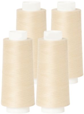 buttinette Overlockgarn im Sparpaket, Farbe: natur, Standardstärke: 120, Nadelstärke: 70 - 100. Inhalt: 4 Spulen, 2500 m pro Spule. Material: 100 % Polyester.