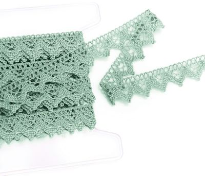 BW-Klöppelspitze "Emma", Farbe: grün, Breite: 2 cm, Länge: 5 m. Material: 100 % Baumwolle.