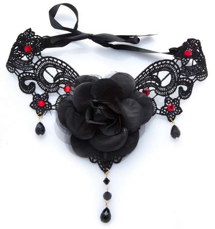 Collier "Rose" – verleihen Sie mit diesem Gothic-Collier Ihrem Kostüm, von Gothic-Braut über Vampir bis hin zu La Catrina, den letzten Schliff!