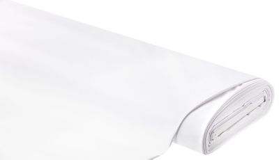 Hochwertiger Elastik-Jersey, Farbe: weiss, chlorresistent, bi-elastisch, Breite: 150 cm, Gewicht: ca. 190 g/m². Material: 85 % Polyester, 15 % Elasthan.