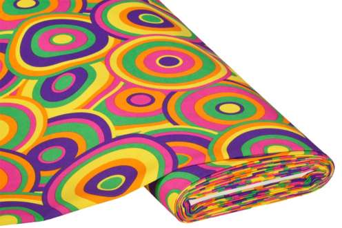Hippiestoff "Lollipop", nicht nur für die 5. Jahreszeit! Auch ausgefallene Deko-Ideen kommen mit den intensiven und knalligen Farben wunderbar zur Geltung, Farbe: grün-color. Material: 100 % Polyester, Breite: 145 cm, Gewicht: ca. 170 g/m².