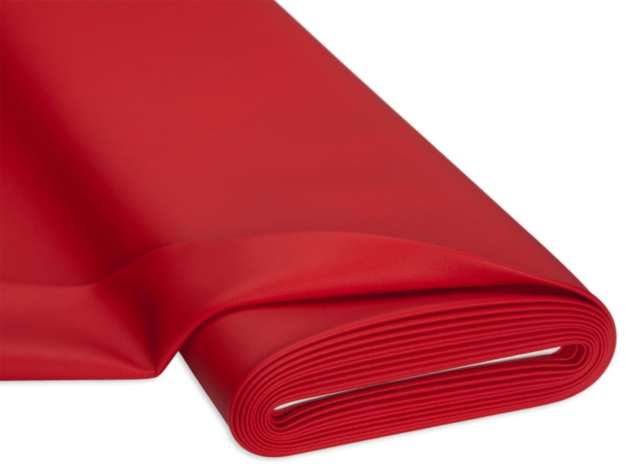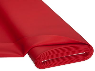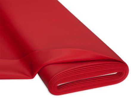 Hochwertiges Kunstleder, Farbe: rot, mit ledernarbiger Oberfläche und weissem, textilem Untergewebe, Stärke: 1 mm, Scheuerwert: 100.000 Touren, Lichtechtheit: 6, flammhemmend nach EN1021/Teil 1 und 2, Breite: 140 cm, Gewicht: ca. 540 g/m². Material: Nutzschicht: 100 % Polyvinylchlorid, Untergewebe: 65 % Polyester, 35 % Viskose.