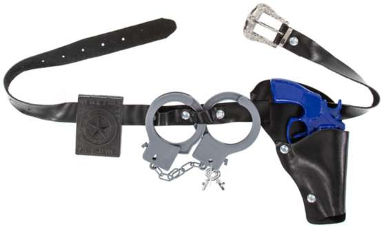 - Lieferumfang: Gürtel, Handschellen, Abzeichen und Pistolen-Holster inkl. Plastikpistole