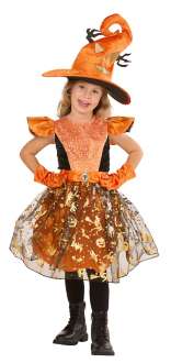 Aber eins ist sicher: In ihrem superschicken Halloween-Kostüm, bei dem alle Details farblich perfekt aufeinander abgestimmt sind, sieht sie zuckersüss aus und hat garantiert jede Menge Süssigkeiten auf der Trick-or-Treat-Tour ergattert. Wer kann schon einer kleinen Hexe im Hexen-Kostüm einen Wunsch abschlagen? Der auffällig orange Hexenhut ist mit dem aufgedruckten Monstergesicht wirklich besonders und rundet das tolle Hexen-Kleid, das einem mit den Halloween-Motiven sofort ins Auge sticht, perfekt ab!