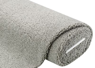 Lammfell-Imitat "Island", Farbe: hellgrau, mit glatter Rückseite, Florhöhe: 8 mm, Scheuerwert: 50.000 Touren, Lichtechtheit: 5, Pilling: 3–4, Breite: 150 cm, Gewicht: ca. 500 g/m². Material: 100 % Polyester.