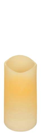 Flackernde LED Kerze aus Echtwachs, batteriebetrieben, warmweiss leuchtende LEDs, Farbe: creme, Grösse: 14 cm hoch, 7,5 cm Ø. Durch den eingebauten Timer schaltet sich die Kerze automatisch täglich für 4 oder 8 Stunden zur gleichen Zeit ein. Nur für den Innenbereich geeignet. Sie benötigen noch 2x 1,5 V AA Batterien.