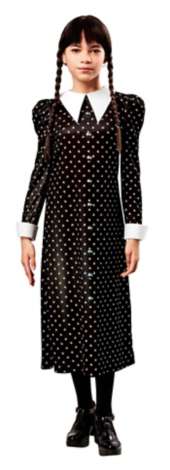 Wednesday Addams – vornehme Blässe, dunkle Zöpfe, schwarzes Kleid – ist die perfekte Stilikone für alle Mädchen, die keine Lust (mehr) auf Rosa und Glitzer haben. Sie lächelt nie, hat ein ausgeprägtes Gerechtigkeitsempfinden und geht auf ein Internat für Aussenseiter mit magischen Fähigkeiten. Wednesdays bester Freund ist eine abgetrennte Hand. Klingt gruselig? Ist es auch – aber eben auch witzig, tiefgründig und spannend. Mit diesem Wednesday-Kostüm können Fans der Serie jetzt selbst in die Rolle der Addams-Tochter schlüpfen. Das Wednesday-Kostüm ist authentisch Wednesdays Kleid aus der Serie nachempfunden. Unbedingt noch eine schwarze Zopfperücke dazu kombinieren, die Nägel schwarz lackieren – und im Wednesday-Kleid die Faschings- oder Halloween-Party stürmen!