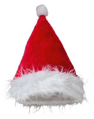 - Besonderheiten: klassische rote Weihnachtsmütze mit weisser Krempe aus Langhaar-Fellimitat und Bommel