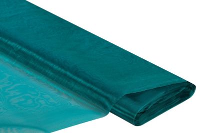 Hauchfeiner, transparenter Organza "Delhi" in hochwertiger Qualität, Farbe: petrol, Breite: 145 cm, Gewicht: 20 g/m². Material: 50 % Polyamid, 50 % Polyester.