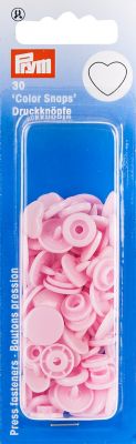 Prym Druckknöpfe "Color Snaps Herz", leichte Schlusskraft, Farbe: rosa, glänzend, Grösse: 12,4 mm Ø, Inhalt: 30 Stück ohne Verarbeitungswerkzeug. Material: Kunststoff.