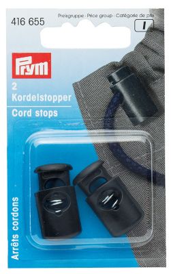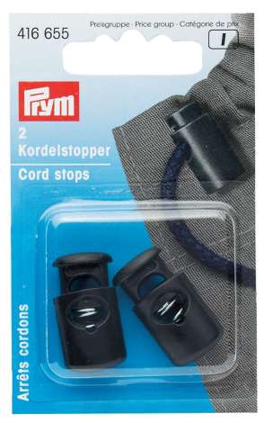 Prym Kordelstopper, aus Kunststoff, geeignet für eine Kordelstärke bis zu max. 6 mm Ø, Farbe: schwarz, Grösse: 1,3 x 2,8 cm, Inhalt: 2 Stück.