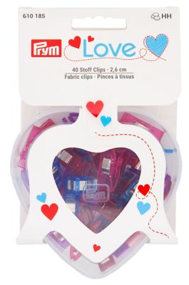 Prym Love Stoffclips inkl. Herzbox, zum Fixieren von Stoffen ohne Stecknadeln, Farbe: bunt, Grösse: 2,6 cm, Inhalt: 40 Stück.