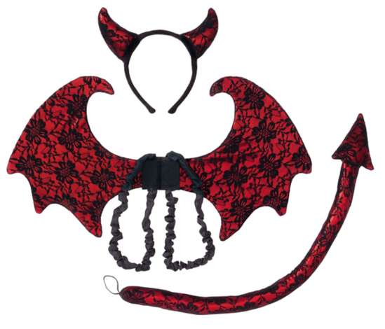 - Lieferumfang: Haarreif mit Hörnern, Flügel, Teufelsschwanz