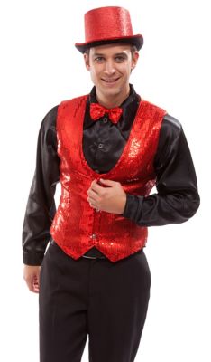Bühne frei für die Paillettenweste! Mit diesem paillettenbesetzten Gilet legen Sie als Showmaster nicht nur glamouröse Auftritte zum Thema Las Vegas und Broadway hin, sondern begeistern auch Charleston- und Cabaret-Fans. Also ran an die Pailletten, Zylinder auf und ab geht die Post!